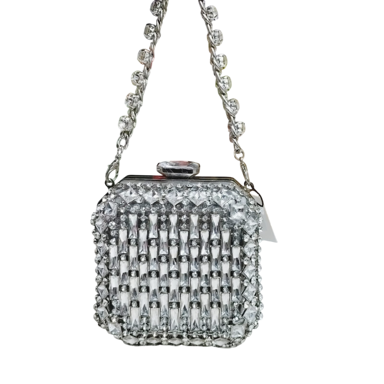 a dazzling touch to your evening look with the Ladies Luxury Party Stone Bag, designed to make you shine at every special occasion. Beautifully adorned with sparkling stones, this elegant mini bag is the perfect accessory for weddings, parties, receptions, and festive events. Despite its compact size, it offers enough space to carry your essentials like phone, cards, keys, and lipstick—without compromising on style.