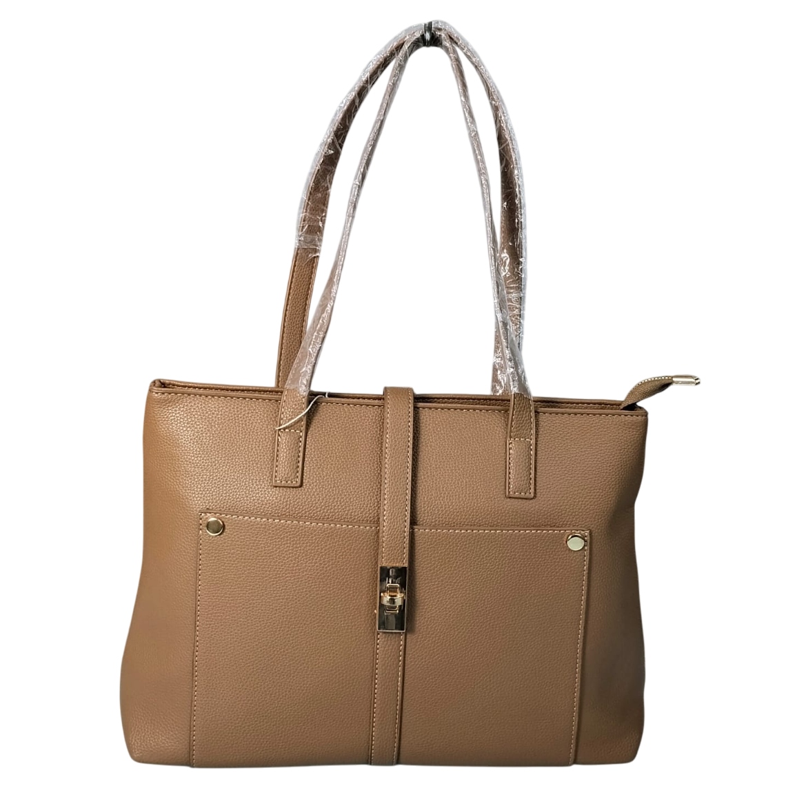 With its spacious 11" x 14.5" size, it offers ample room for your essentials — from your phone, wallet, and makeup kit to notebooks and accessories. The smooth texture, fine stitching, and gold-tone hardware give it a refined, classy finish. Whether you’re heading to work, brunch, or travel, this shoulder bag ensures you carry your essentials in pure luxury.