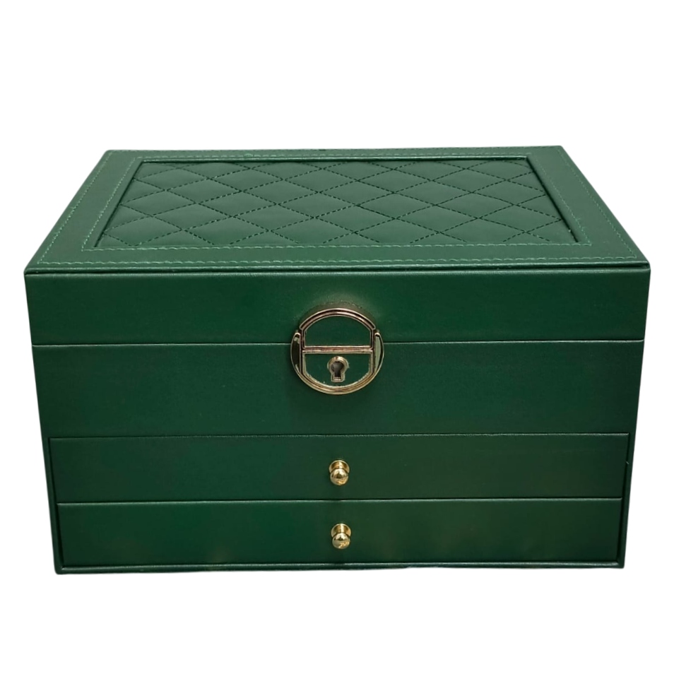 Elevate your jewelry storage with our Luxury Jewelry Organizer Box – the perfect blend of sophistication and function. Crafted with premium materials, this compact yet spacious organizer keeps your treasured accessories neatly arranged and protected. Whether you're at home or traveling, this sleek box adds a touch of elegance to your collection.
