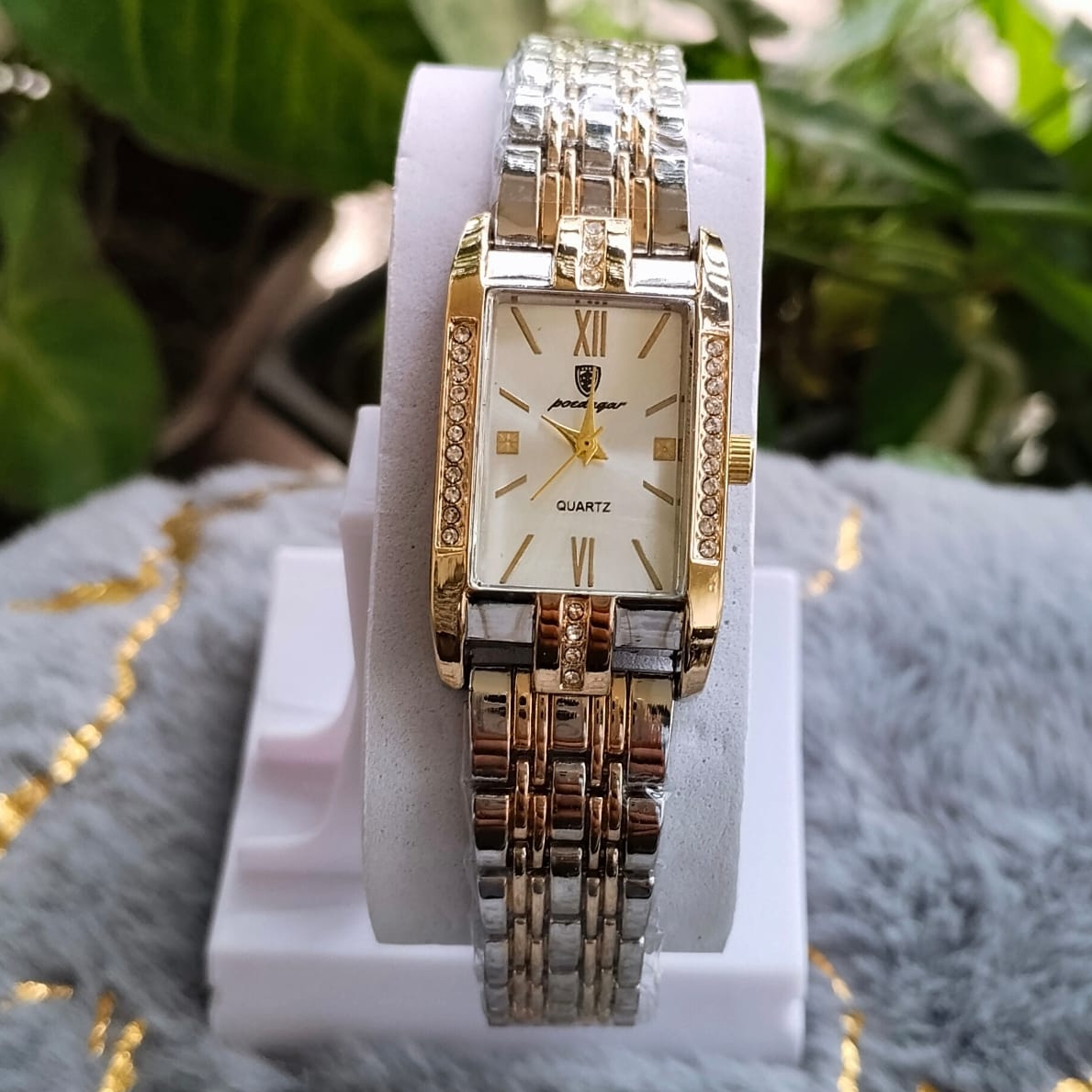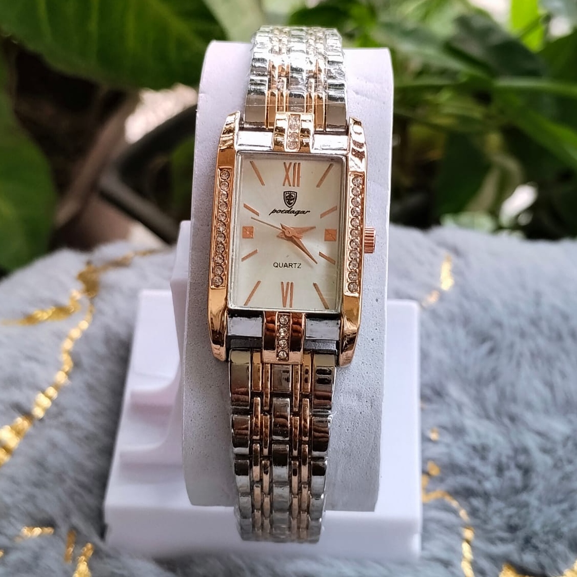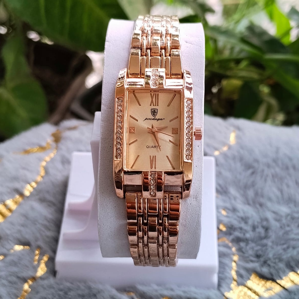 Elegance meets modern design with the Poedagar Brand Square Shape Stone Ladies Watch.