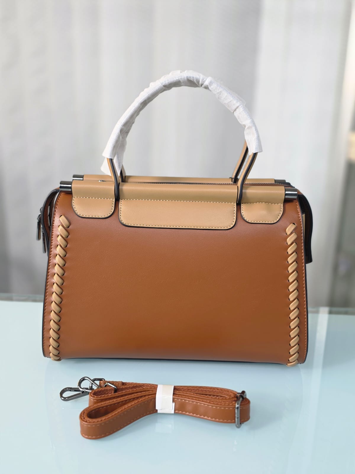 Premium Leather Hand Bag With Long Belt